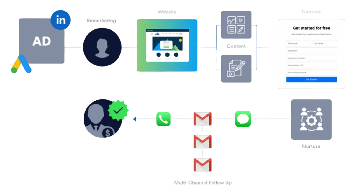 Nuestro marco de trabajo se alinea con la forma en que los compradores B2B modernos toman decisiones. Desde el primer contacto hasta la firma del contrato, cada etapa se apoya en contenido estratégico, mensajes específicos y herramientas de marketing que generan confianza, crean urgencia y generan oportunidades de venta.